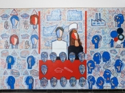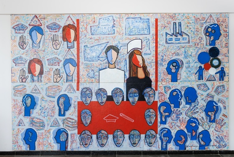 A "COLAÇÃO DE GRAU" é uma obra do artista plástico Adilson Fernandes Guanabara, criada em 2017 em comemoração ao centenário de Joaçaba, SC. O mural é uma celebração da educação e da comunidade, representando um momento de conquista e realização. Com sua paleta vibrante e elementos estilizados, a obra é um tributo à cidade e à sua gente, simbolizando a identidade e o espírito de Joaçaba. A obra permanece no acervo particular da Unoesc - Campus de Joaçaba, SC.